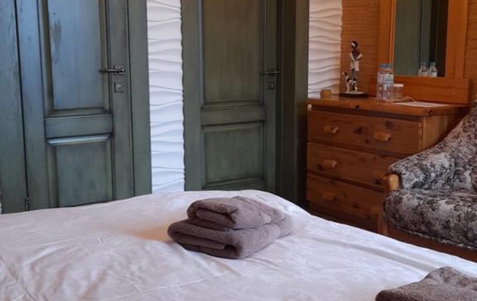 В номере: зеркало, кровать двуспальная,прикроватные тумбочки, столик журнальный, стул, шкаф, кондиционер, телевизор ЖК