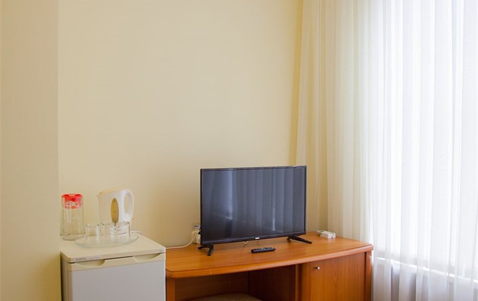 В номере: вешалка, зеркало, кресло, кровати односпальные /одна двуспальная кровать, прикроватные тумбочки, стол, столик журнальный, шкаф, телевизор, телефон, холодильник, чайный набор посуды, электрочайник