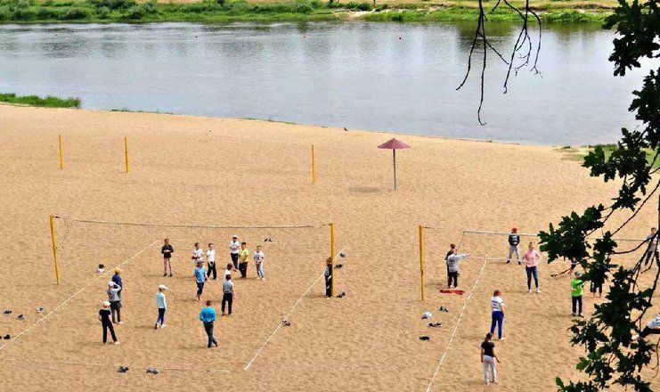- песчаный, оборудованный кабинками для переодевания, в 250 м от санатория
