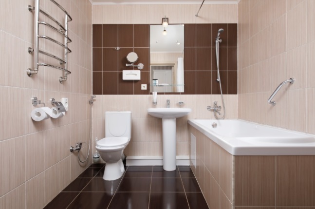 Санузел: раковина, унитаз, ванна, душевая кабина, биде, фен