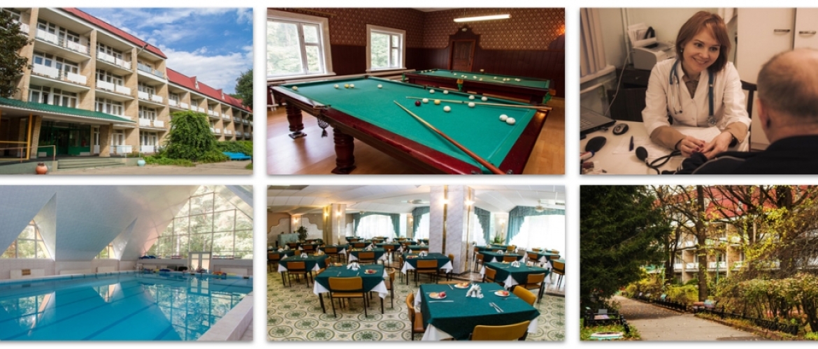 Лечебная база: общий анализ мочи, клинический анализ крови, исследование свертывающей системы крови: протромбин, МНО (по показаниям), исследование углеводного обмена (анализ крови на глюкозу, анализ мочи на сахар), биохимическое исследование крови на определение липидного обмена (общий холестерин и триглицериды), ЭКГ при поступлении и выписке, в динамике еженедельно, нагрузочная проба (велоэргометрия) или суточное мониторирование ЭКГ (по показаниям), реоэнцефалография (по показаниям); эхокардиография (по показаниям), лечебный массаж, ванны («сухие» углекислые, радоновые, 4-х камерные ванны), душ циркулярный, внутривенные струйные вливания, внутримышечные или подкожные инъекций лекарственных препаратов, аппаратная физиотерапия (лазеротерапия, гальванизация, лекарственный электрофорез, электросон, дарсонвализация, магнито-, электротерапия, лечение искусственной измененной воздушной средой (ингаляционная терапия), аэротерапия, терренкур. Оздоровительные программы: «Реабилитация», «Оздоровление», «Озонотерапия», «Общая кардиология», «Гемодин».