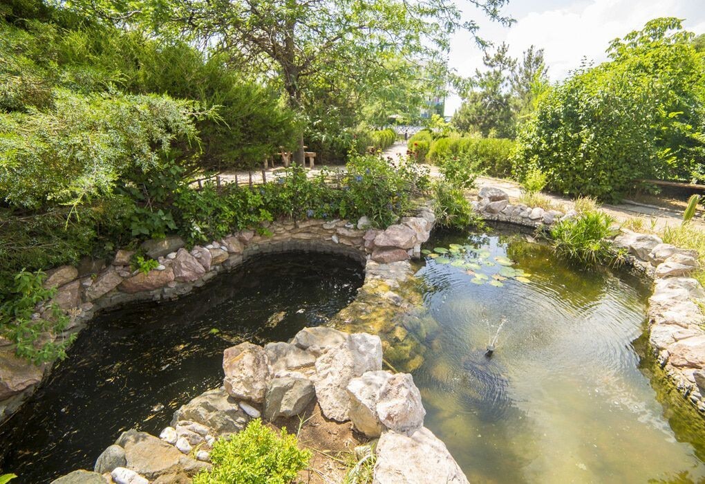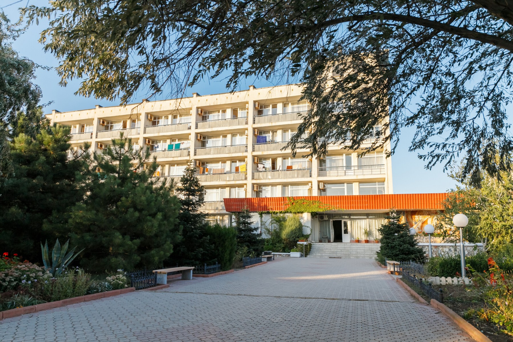 Территория санатория "Северное сияние" расположилась в курортном пригороде города Саки – между соленым Сакским озером и побережьем Черного моря.