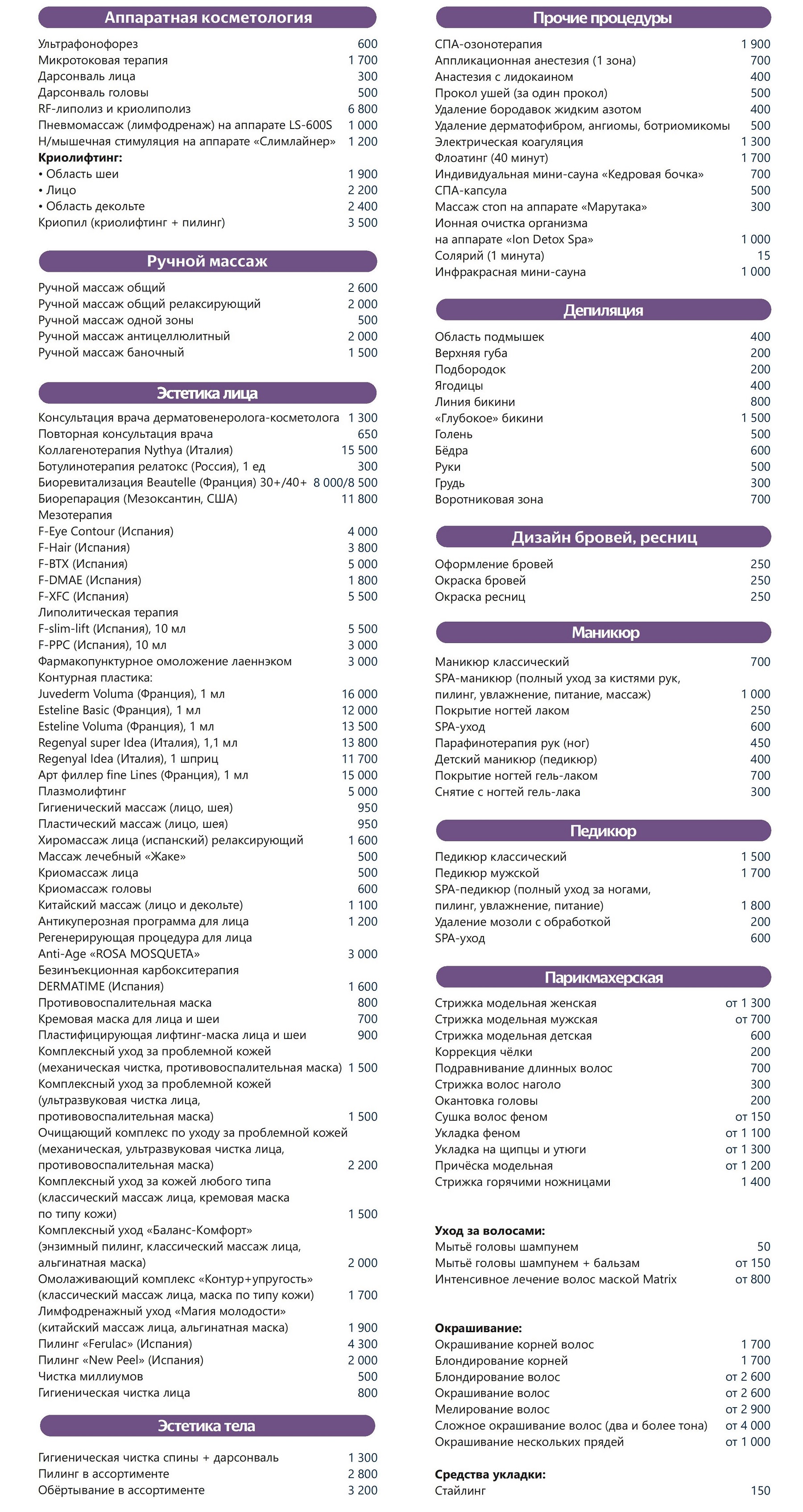 Прейскурант на косметологию и SPA в санатории «Усть-Качка» Пермь