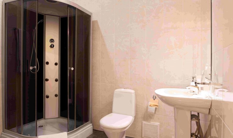 Санузел: с душем, туалетные принадлежности, фен